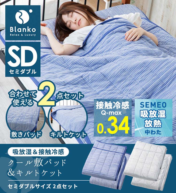 敷きパッド セミダブル 冷感 敷きパッド セミダブル 春夏 夏用 かわいい 涼しい 吸放湿 接触冷感クール敷パッド&キルトケット2点セット BKQS1612-SD敷きパット ひんやり 敷パット 接触冷感 キルトケット 吸放湿 シーツ 敷パッド 夏物 寝具【D】